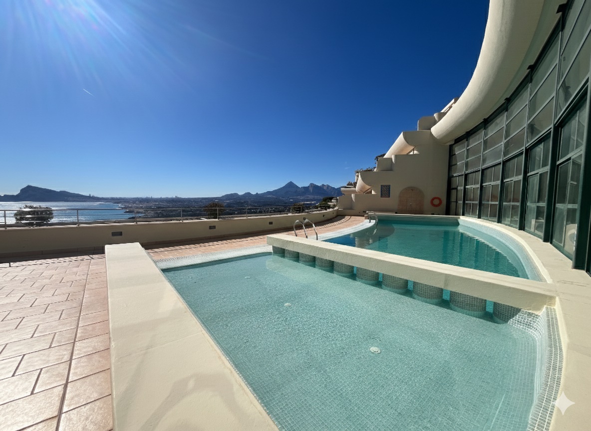 Cet élégant appartement offre environ 150 m² d’espace intérieur raffiné, associé à une terrasse privée tout aussi impressionnante de 150 m² qui s’ouvre sur une vue à couper le souffle sur la baie d’Altea et la remarquable Sierra de Bernia.
